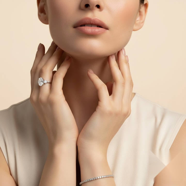 A luminous oval center stone reflects the heart at the center of the story — you.